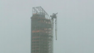 Tentatively exploring the city the next day, I ran headlong into that crazy scene with the giant crane hanging off the side of a building.(crane photo courtesy of ABC’s online news site)